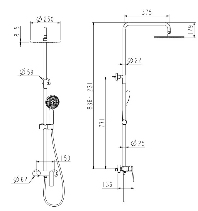 ручной душ, шланг 150 см |