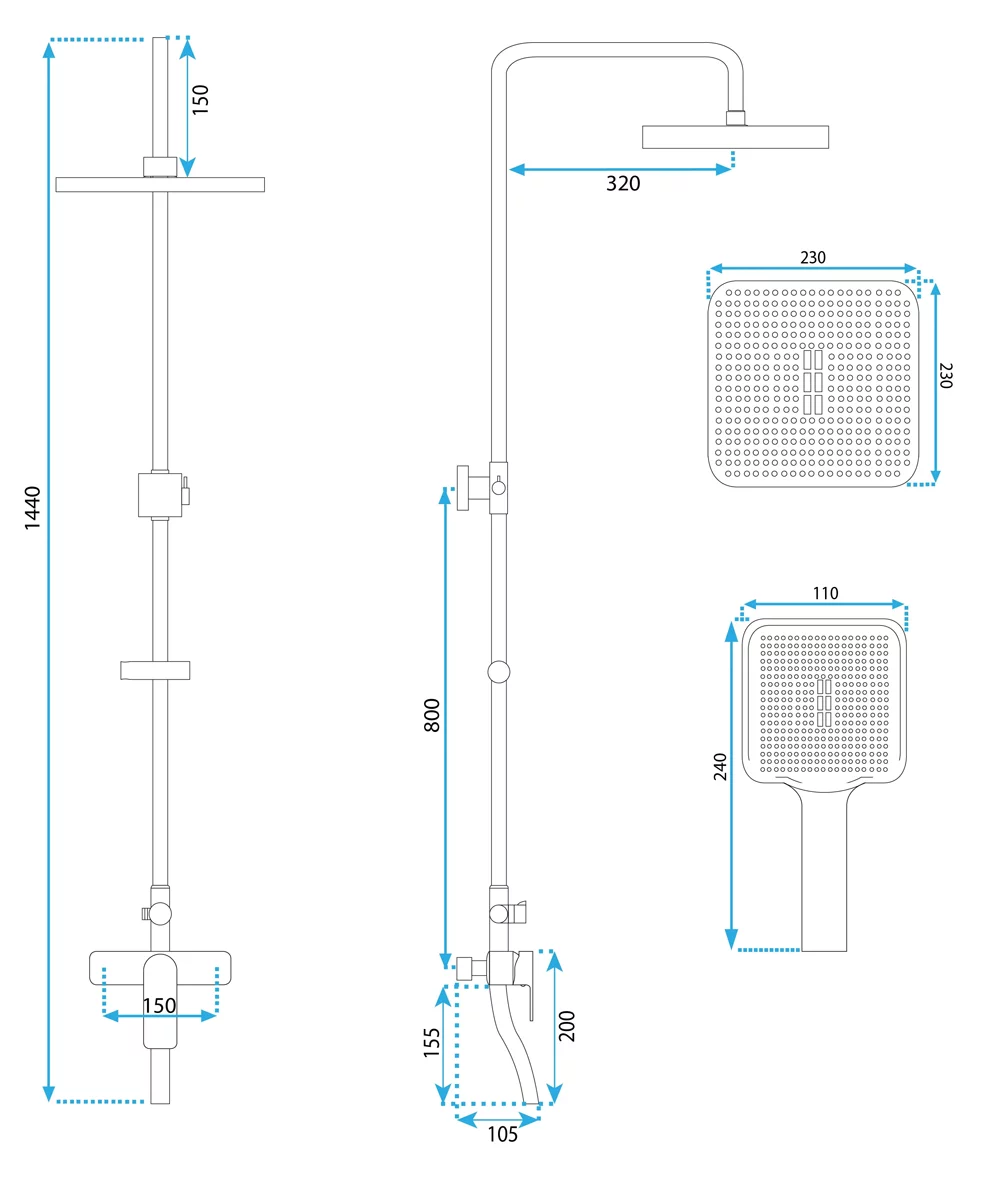 ручной душ, шланг 150 см |