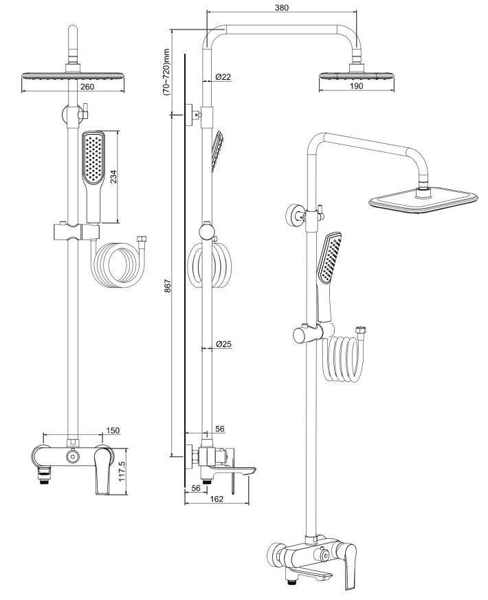 Душевая система Vivi Felice 8060 Nero opaco купить в Могилеве, цена