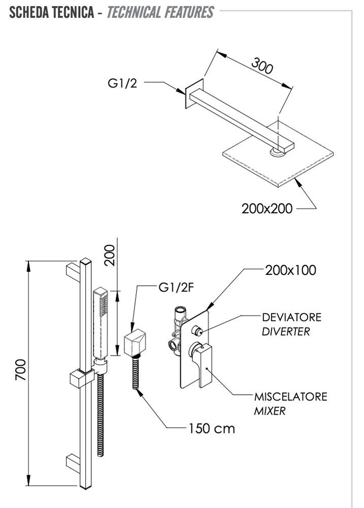 скрытая часть, ручной душ, шланг |