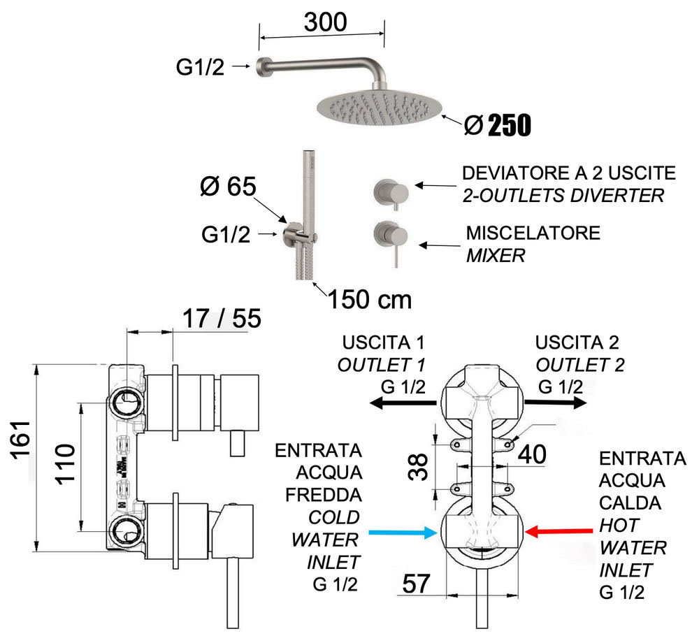 Душевая система Remer X Style INOX SSX92PS02UFM25, нержавеющая сталь купить в Могилеве, цена