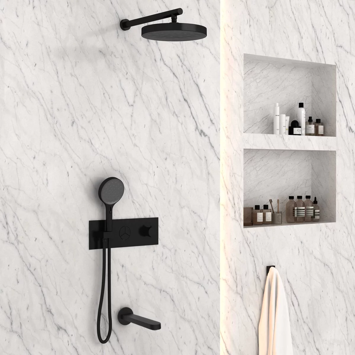 скрытая часть, ручной душ, шланг |
