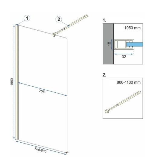 Душевая стенка Rea Aero Gold 80x195 K8439 купить в Могилеве, цена