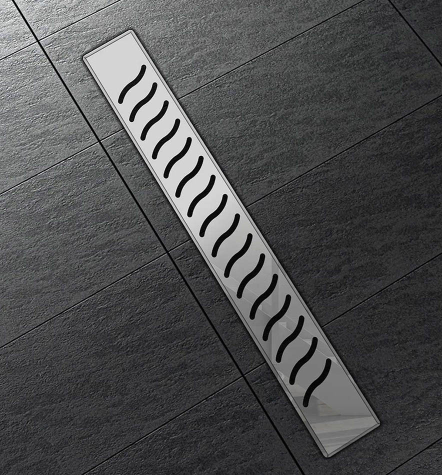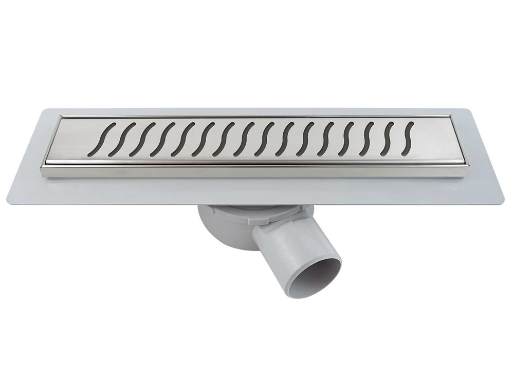 Поворотный сифон 360 градусов из ABS-пластика, дренажный канал из ABS-пластика, водонепроницаемые уплотнительные кольца, решетка и рамка из нержавеющей стали 1 мм, противозапаховый затвор, водонепроницаемая мембрана, пластиковый сервисный ключ, комплект регулируемых по высоте опор