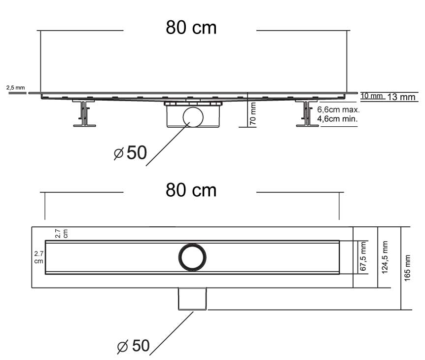 Поворотный сифон 360 градусов из ABS-пластика, водонепроницаемые уплотнительные кольца, дренажный канал из ABS-пластика, противозапаховый затвор, водонепроницаемая мембрана, рамка и решетка из нержавеющей стали 2 мм, комплект регулируемых по высоте опор, пластиковый сервисный ключ, регулировочный винт из нержавеющей стали, регулировка соединения.