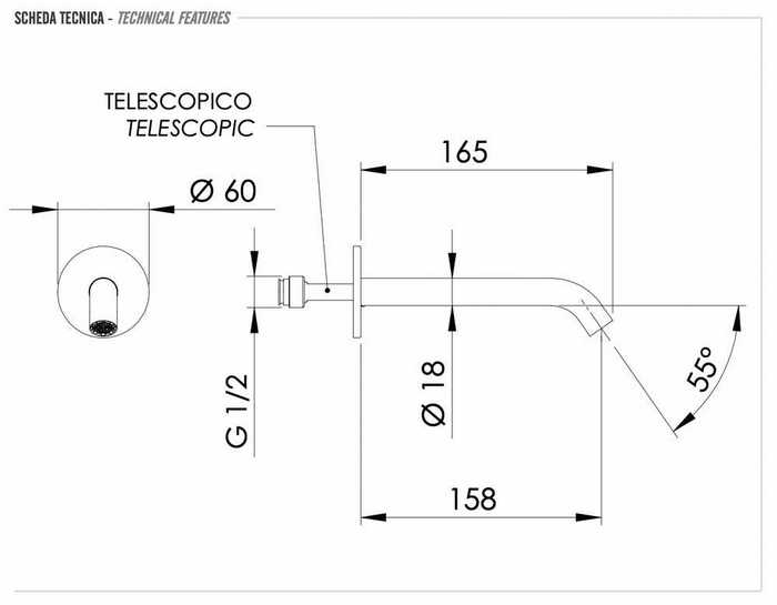 Излив настенный 16 см Remer X Style 91XNO, черный матовый