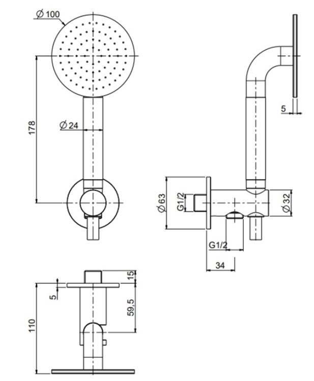 Ручной душ с держателем и выпуском QuadroDesign 1266AS купить в Могилеве, цена