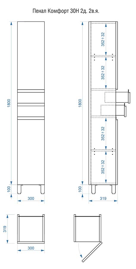Пенал напольный Vela Мира 30Н2 (двери и ящики) петли правые RS623484