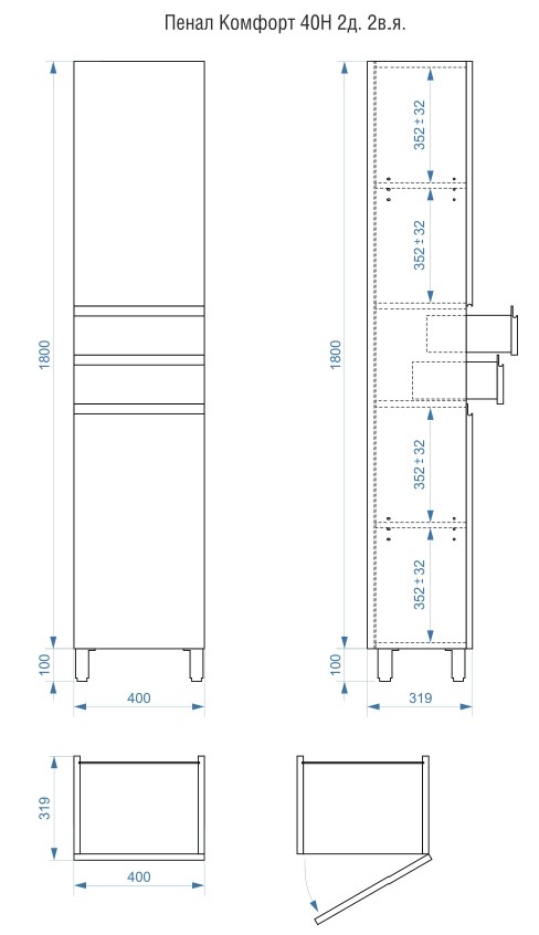Пенал напольный Vela Мира 40Н2 (двери и ящики) RS623487 купить в Могилеве, цена