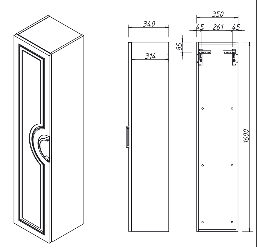 Пенал подвесной Caprigo Valletta R 35350R-SF019