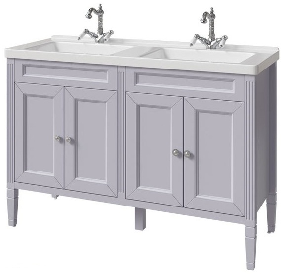 Тумба для двух рак.125 см, 4 двери, выпускается в любых отделках из реестра CONCEPT, кроме SF027 Бланж. Варианты раковин: Гармония-125