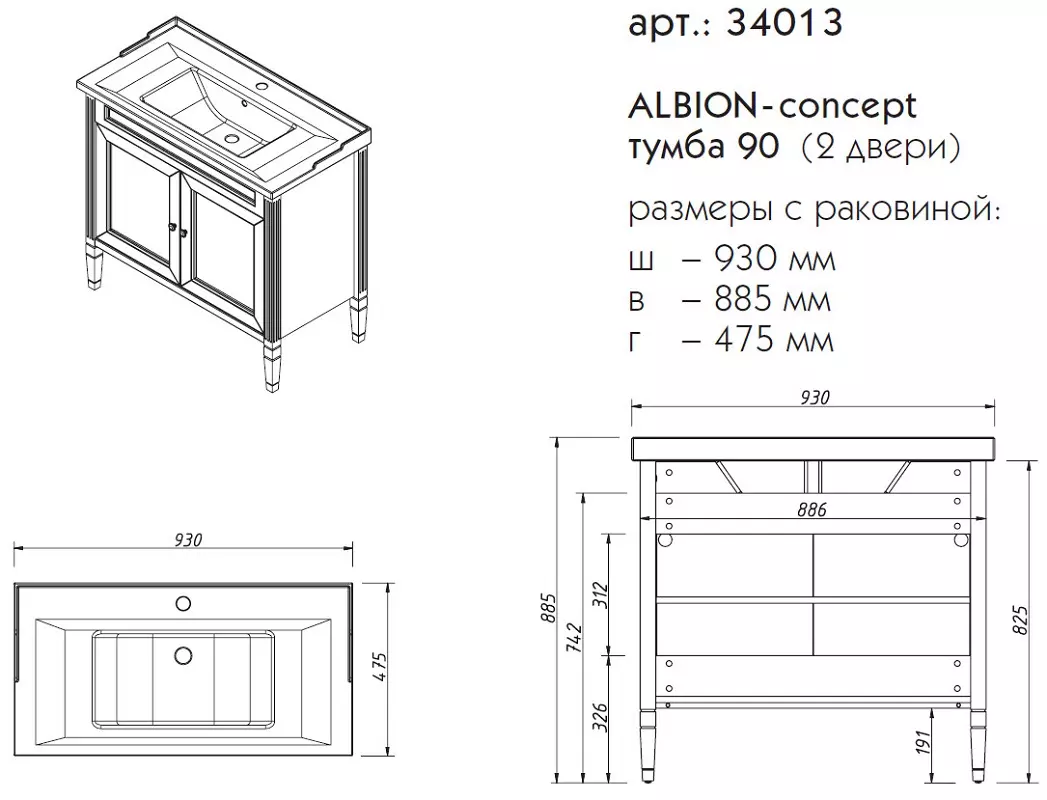 Тумба напольная Caprigo Albion Concept 90 34013-TP811 купить в Могилеве, цена