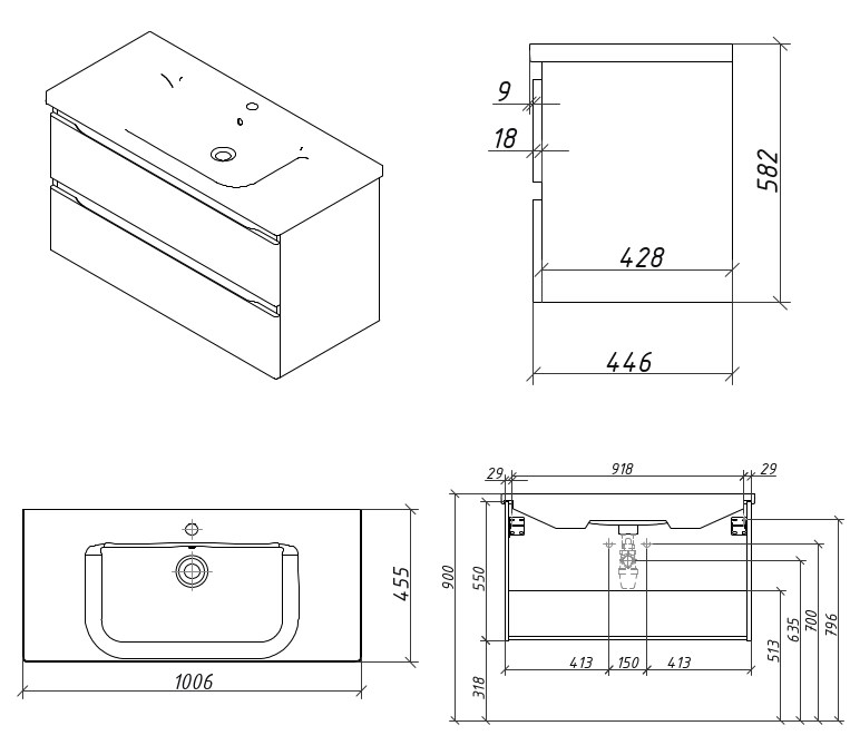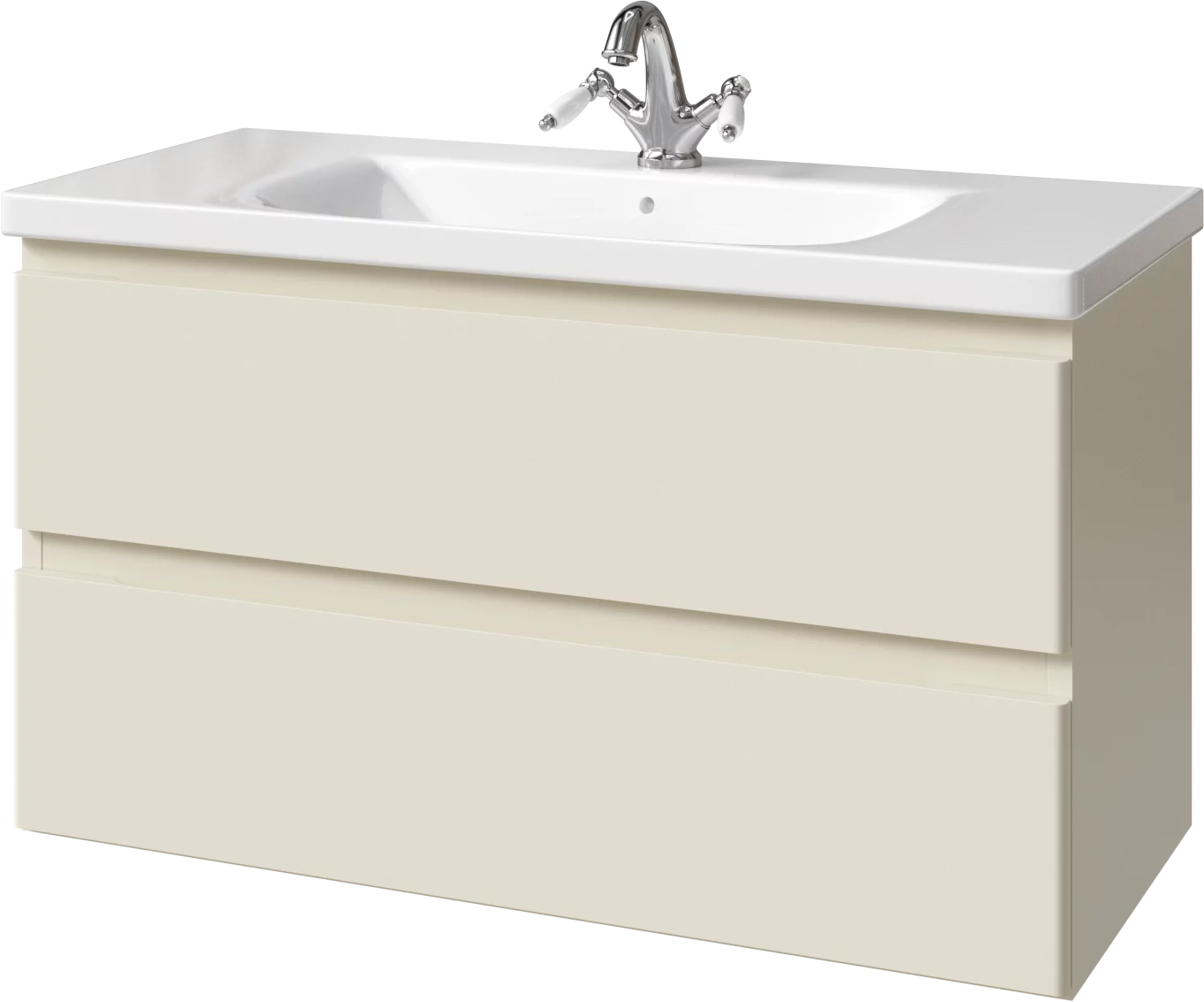 Тумба подвесная для раковины 100 см с 2 ящиками. Ручки интегрированные в фасадах. Выпускается в Матовых и Текстурированных отделках из реестра MODERN (ограничение по глянцевым отделкам).