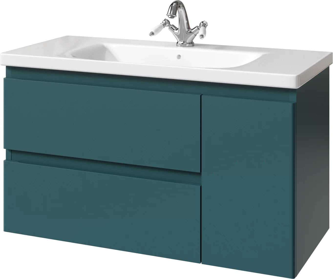 Тумба подвесная для раковины 100см с 2 ящиками и 1 дверью (справа). Ручки интегрированные в фасадах. Выпускается в Матовых и Текстурированных отделках из реестра MODERN (ограничение по глянцевым отделкам).