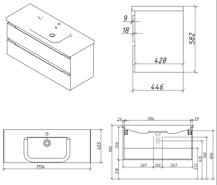 Тумба подвесная Caprigo Forte 120 36116-SF028 купить в Могилеве, цена