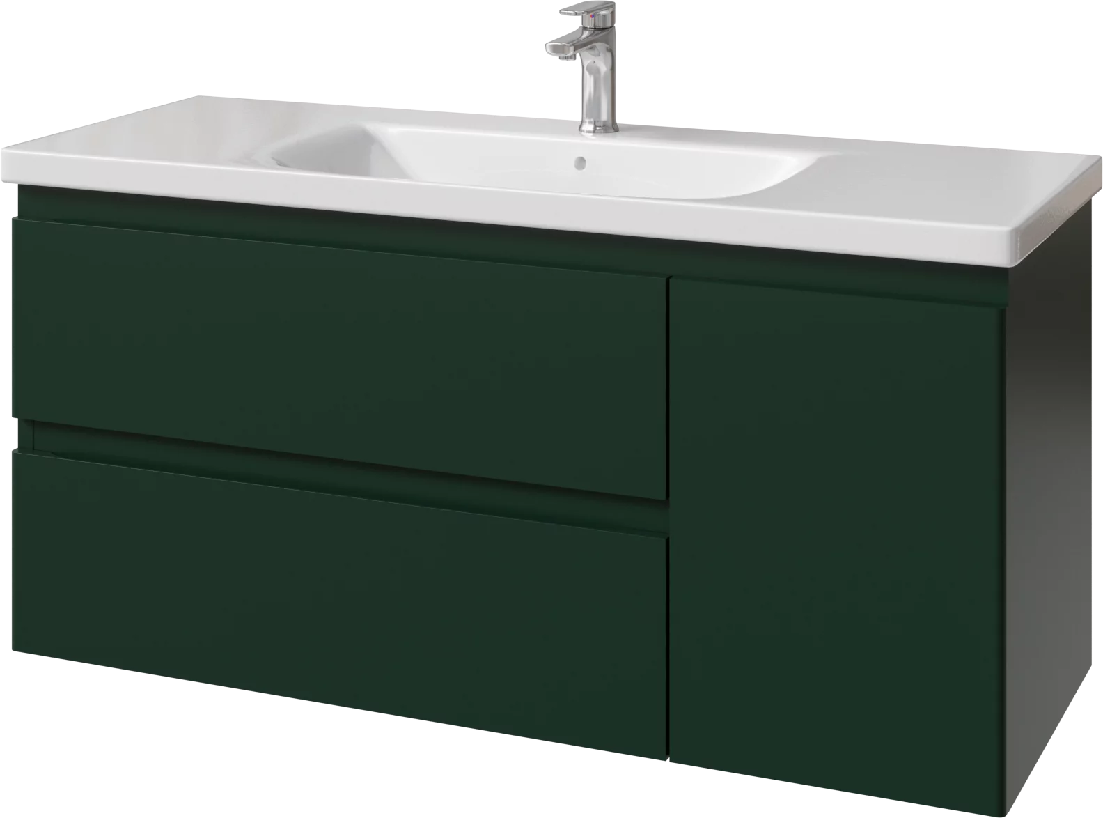 Тумба подвесная для раковины 120 см с 2 ящиками и 1 дверью (справа). Ручки интегрированные в фасадах. Выпускается в Эмалях из реестра CLASSIC.