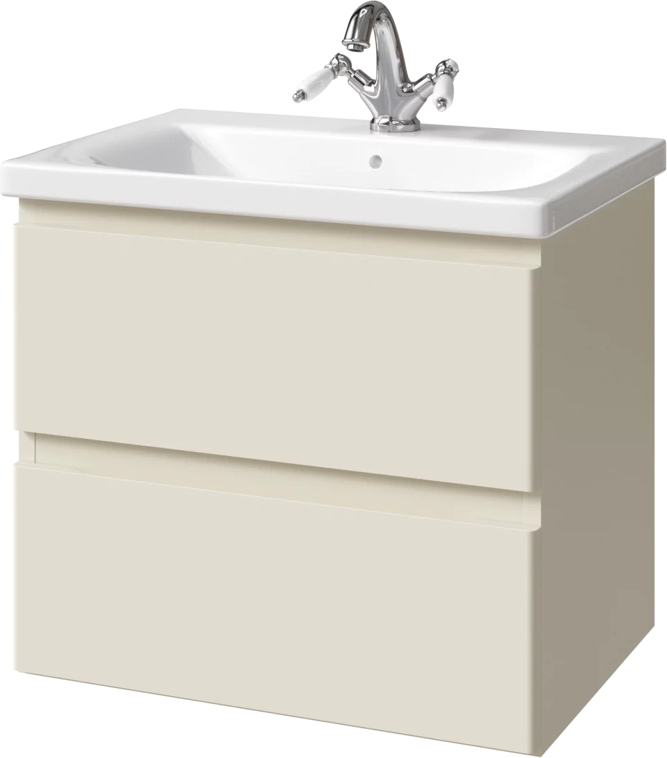 Тумба подвесная для раковины 65 см с 2 ящиками. Ручки интегрированные в фасадах. Выпускается в Матовых и Текстурированных отделках из реестра MODERN (ограничение по глянцевым отделкам).