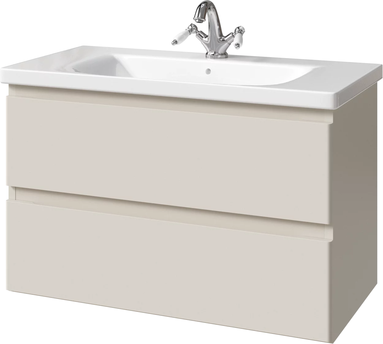 Тумба подвесная для раковины 90 см с 2 ящиками. Ручки интегрированные в фасадах. Выпускается в Матовых и Текстурированных отделках из реестра MODERN (ограничение по глянцевым отделкам).