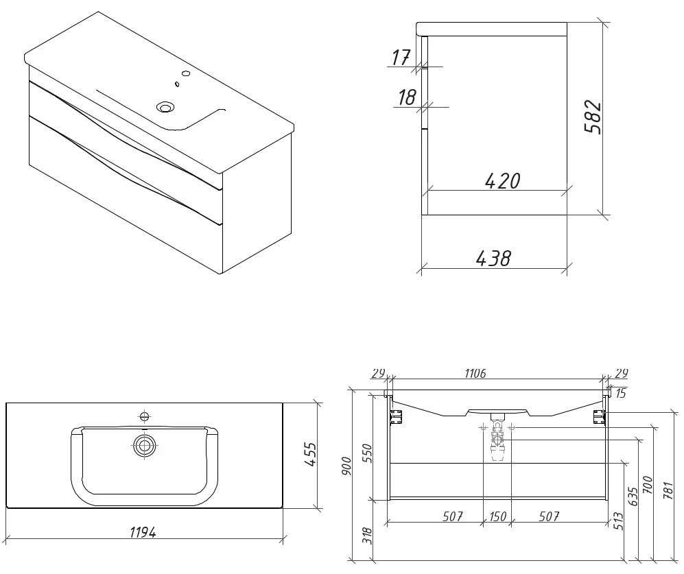 Тумба подвесная Caprigo Lento 120 36216-SF028 купить в Могилеве, цена