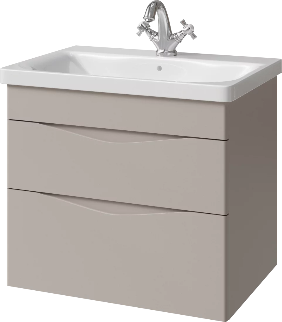 Тумба подвесная для раковины 65 см с 2 ящиками. Ручки интегрированные в фасадах. Выпускается в Матовых и Текстурированных отделках из реестра MODERN (ограничение по глянцевым отделкам).