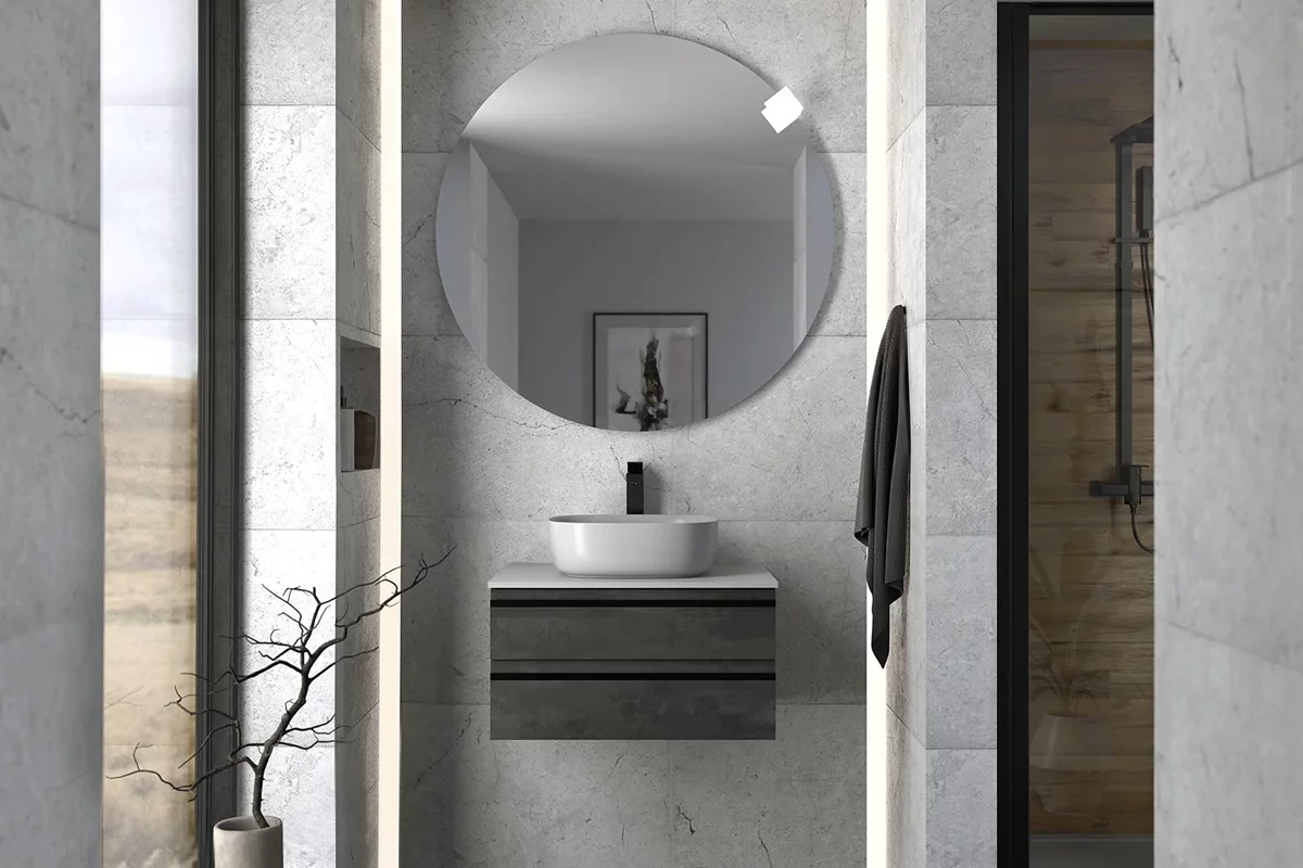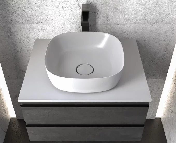 Alexis OA в различных размерах представляет собой подвесную тумбу и столешницу из искусственного камня Керрок.