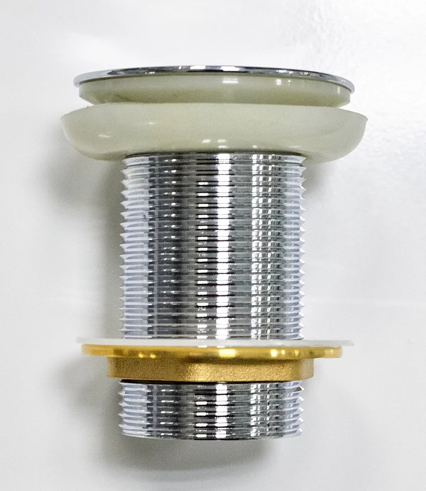 Простая и эффективная конструкция этого донного клапана делает его идеальным выбором для тех, кто ценит минимализм и надежность в сантехнике. Изготовленный из прочной латуни, он гарантирует стабильное водоотведение и долговечность в использовании.
