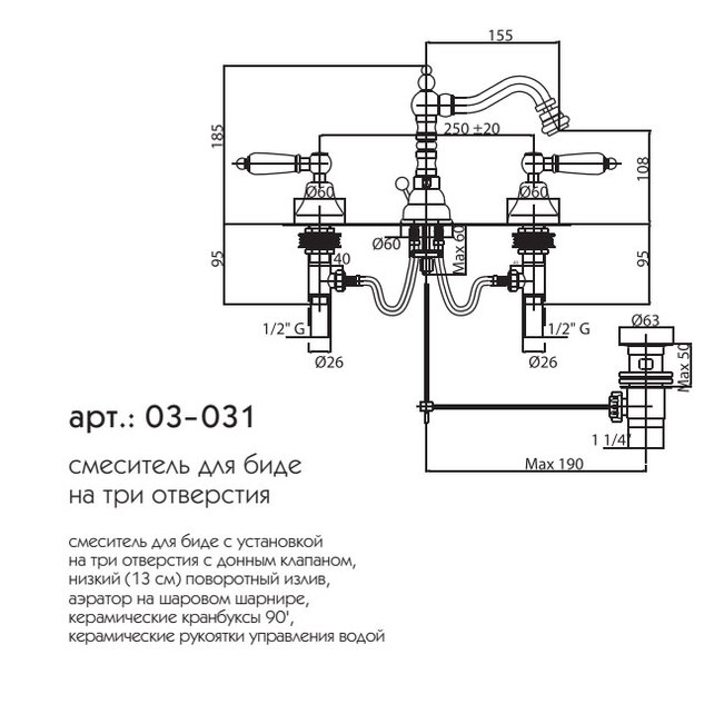 Смеситель для биде Caprigo Adria-classic 03-031-VOT купить в Могилеве, цена