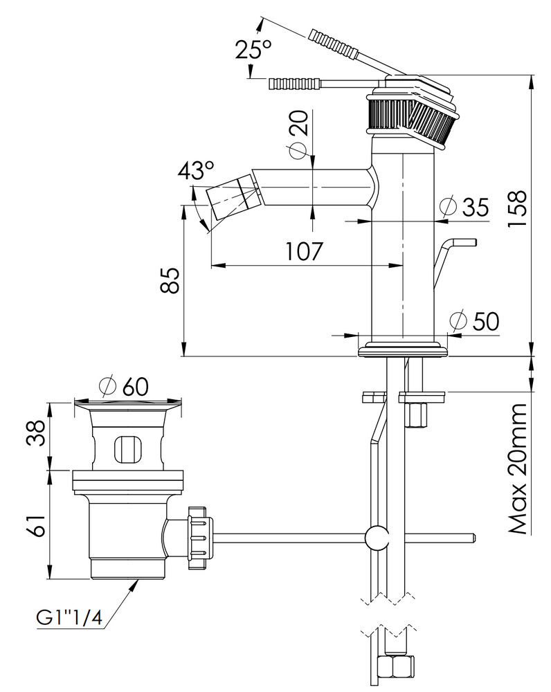 Смеситель для биде Remer Atelier AL20NO, черный матовый