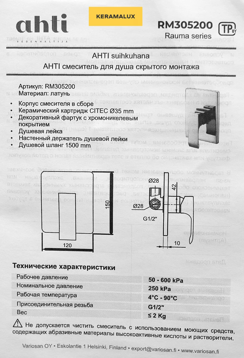 Смеситель для душа Ahti Rauma RM305200 купить в Могилеве, цена