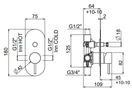 Внешняя часть смесителя для душа с автоматическим/ручным переключателем