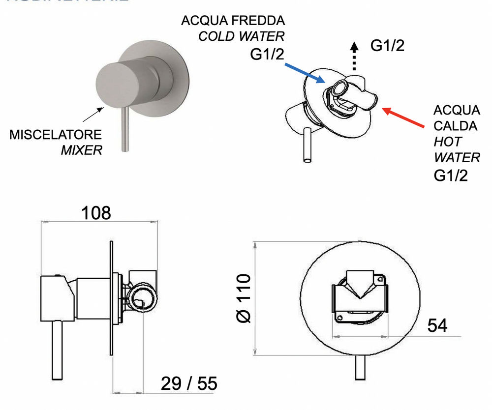 Смеситель для душа Remer X Style INOX SSX30L, нержавеющая сталь