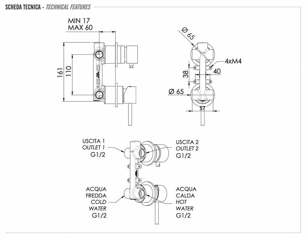 Смеситель для душа Remer X Style INOX SSX92P, нержавеющая сталь