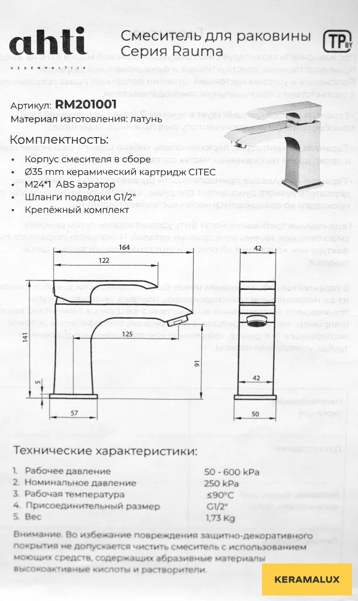 Смеситель для умывальника Ahti Rauma RM201001 купить в Могилеве, цена