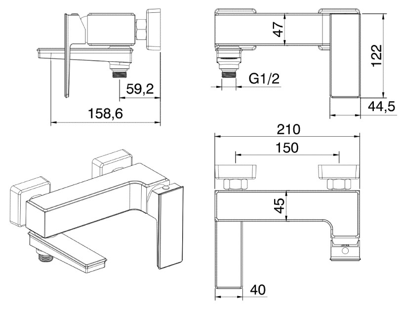Смеситель для ванны Vivi Felice 3040 cromo
