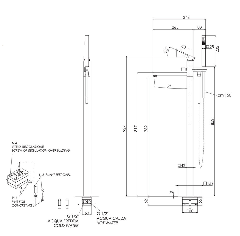 скрытая часть, ручной душ, шланг |