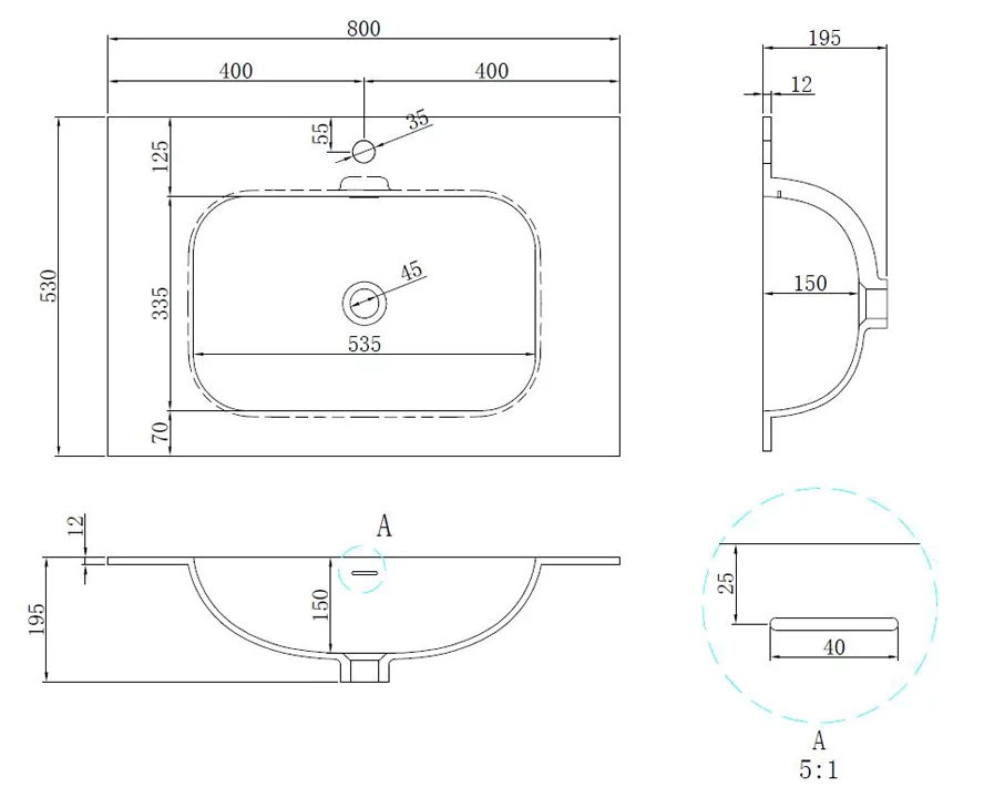 Раковина из материала Corian для серии мебели Elise