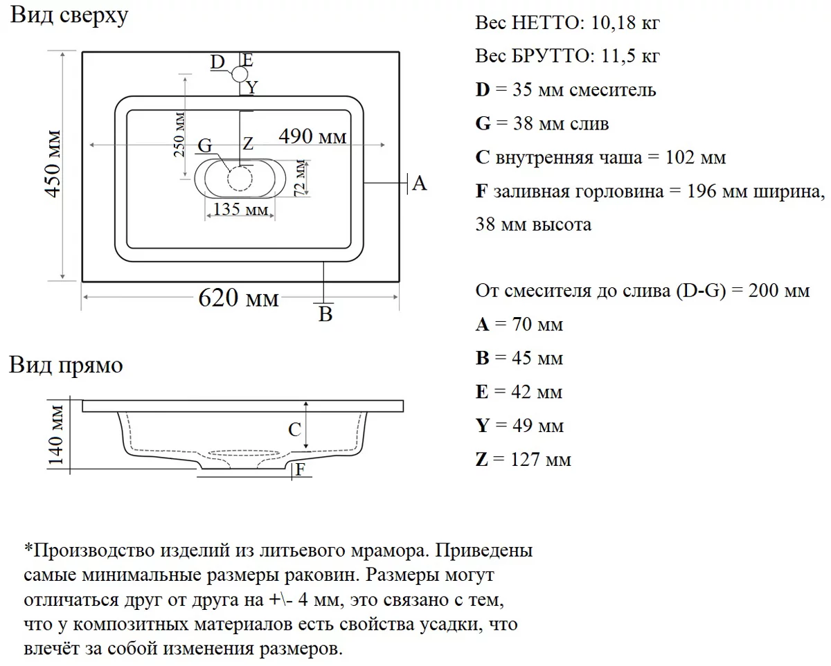 Диаметр сливного отверстия, мм