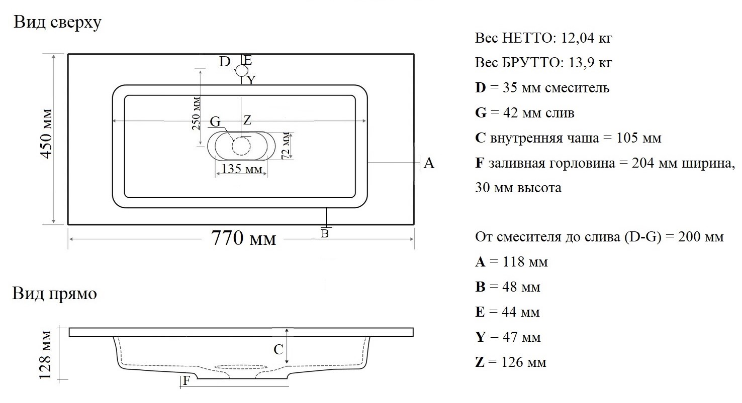 Диаметр сливного отверстия, мм