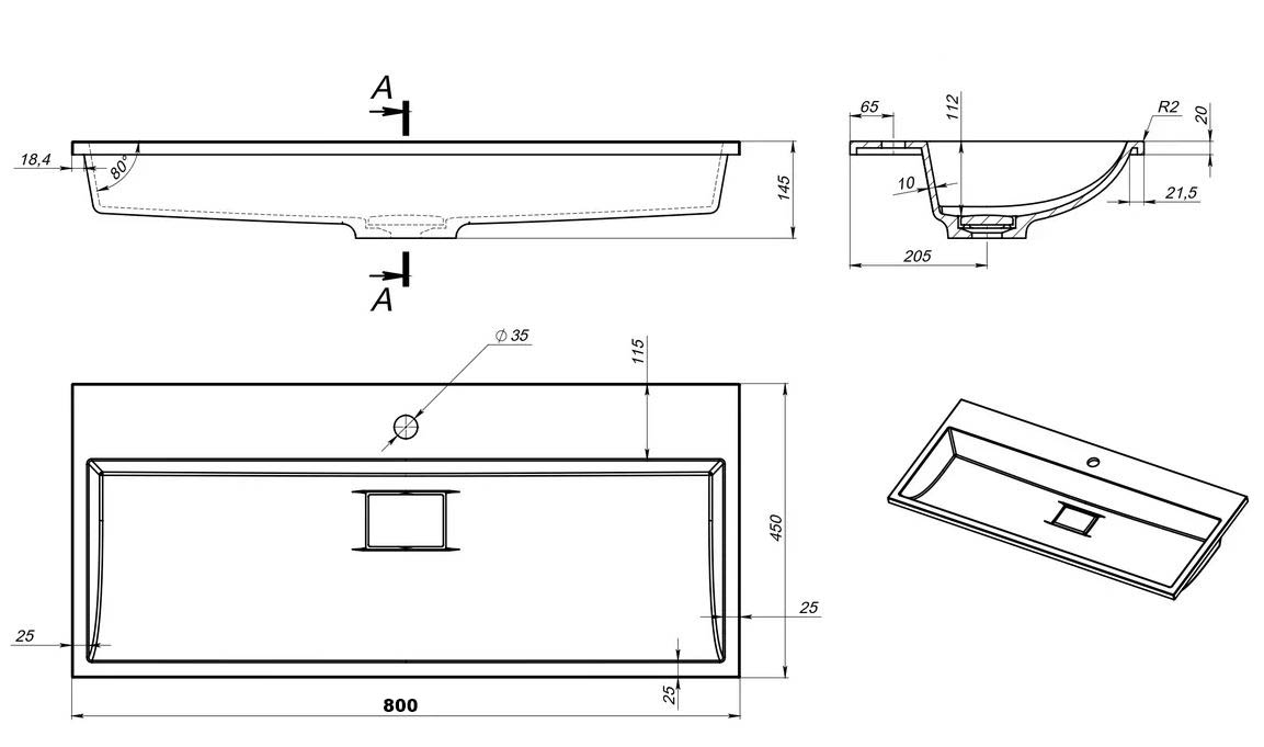 Умывальник Versalia Absolute 80