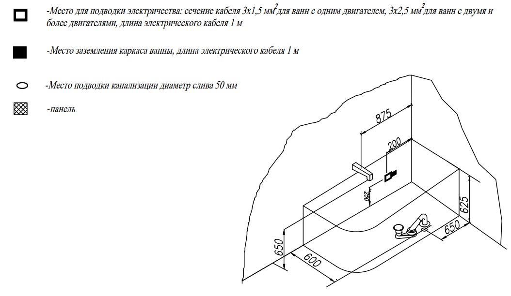 Важно! В указанную стоимость входит собранная ванна на каркасе, с установленным сливом-переливом в цвете хром.
