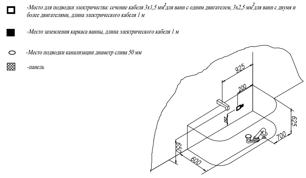 Важно! В указанную стоимость входит собранная ванна на каркасе, с установленным сливом-переливом в цвете хром.