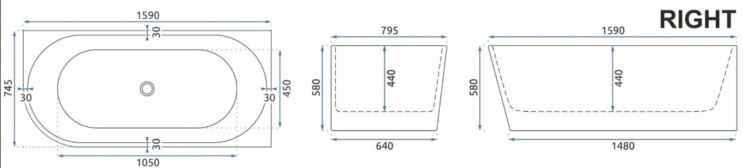 Ванна акриловая Rea Bellanto 1600 R W0253 купить в Могилеве, цена