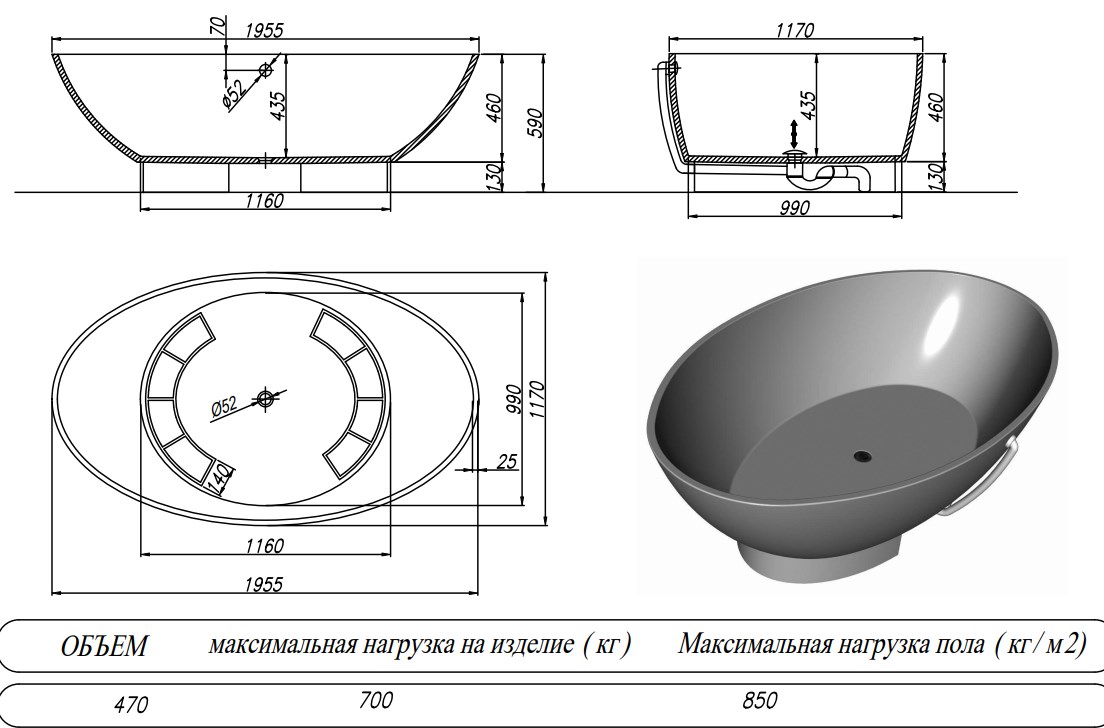 Ванна из искусственного камня Kolpa-San Tristan FS 196x117 Black купить в Могилеве, цена