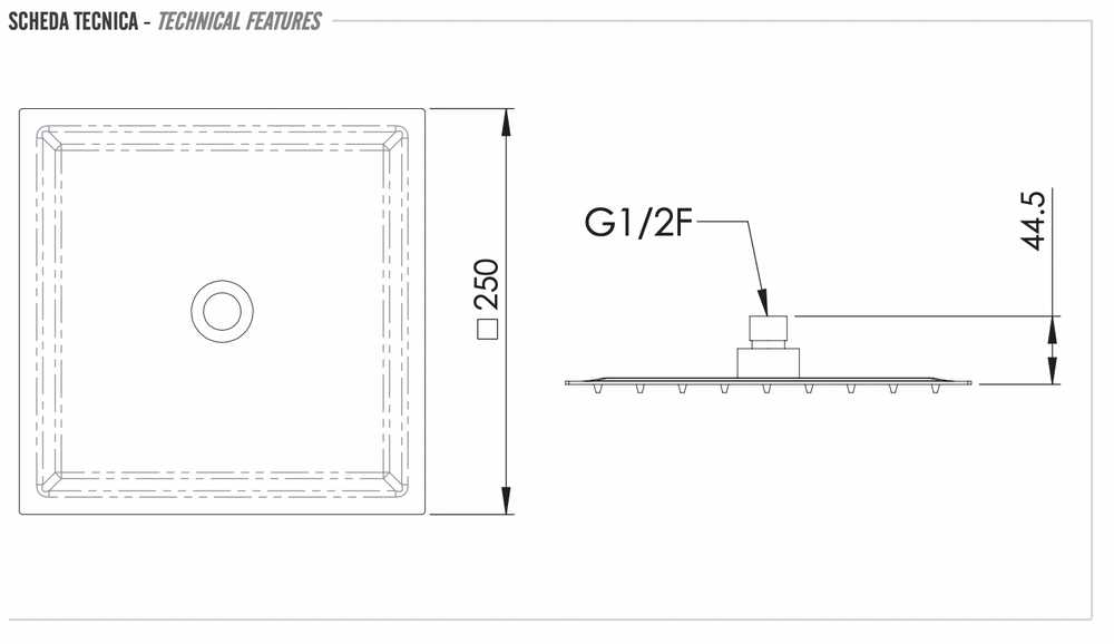 Верхний душ с шарнирным соединением 25 см Remer 357UFS25BOX, белый матовый купить в Могилеве, цена