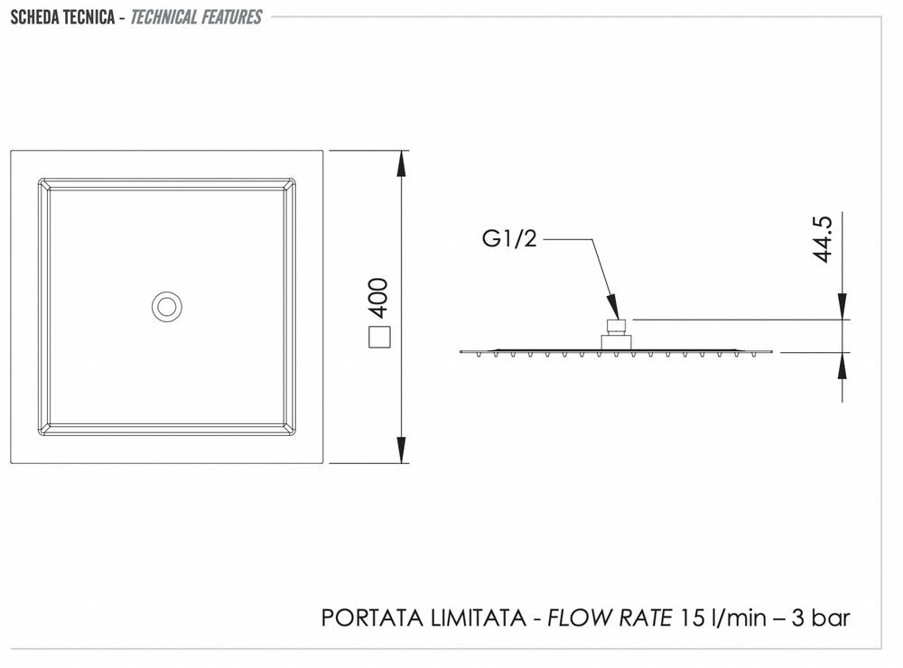 Верхний душ с шарнирным соединением 40 см Remer 357UFS40NOX, черный матовый